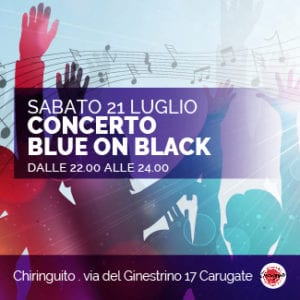 Ancora una volta il Chiringuito di Carugate rinnova l’appuntamento con la musica dal vivo. Sabato sera sarà la volta dei Blue on Black, band che propone gli storici successi che hanno segnato la storia degli anni ’60-’70-’90. Scopri di più QUI