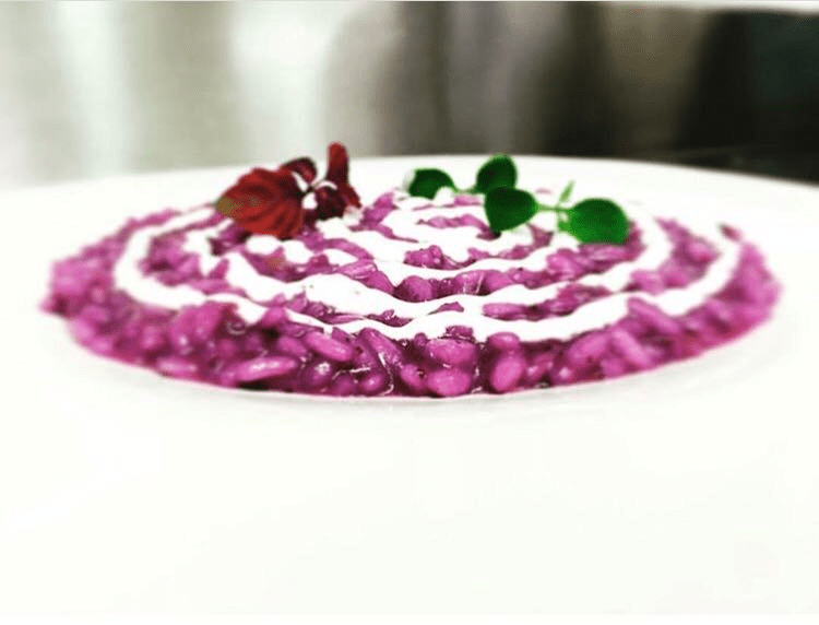 Acquerello in risotto con estratto di mirtillo e yogurt greco