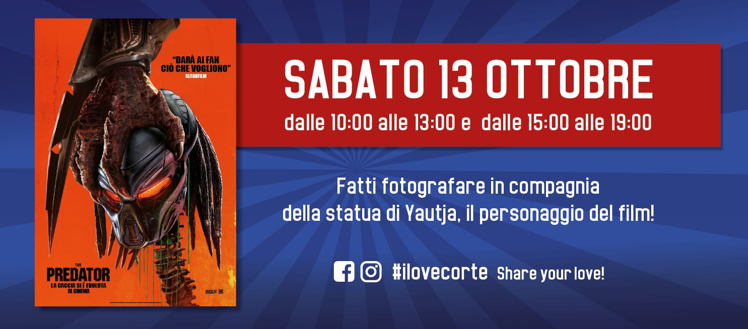 A raccolta tutti i piccoli e grandi fan della pellicola: dalle 10 alle 13 e dalle 15 alle 19, in galleria sarà presente Yautja, il personaggio del film, e sarà possibile farsi fotografare con lui!