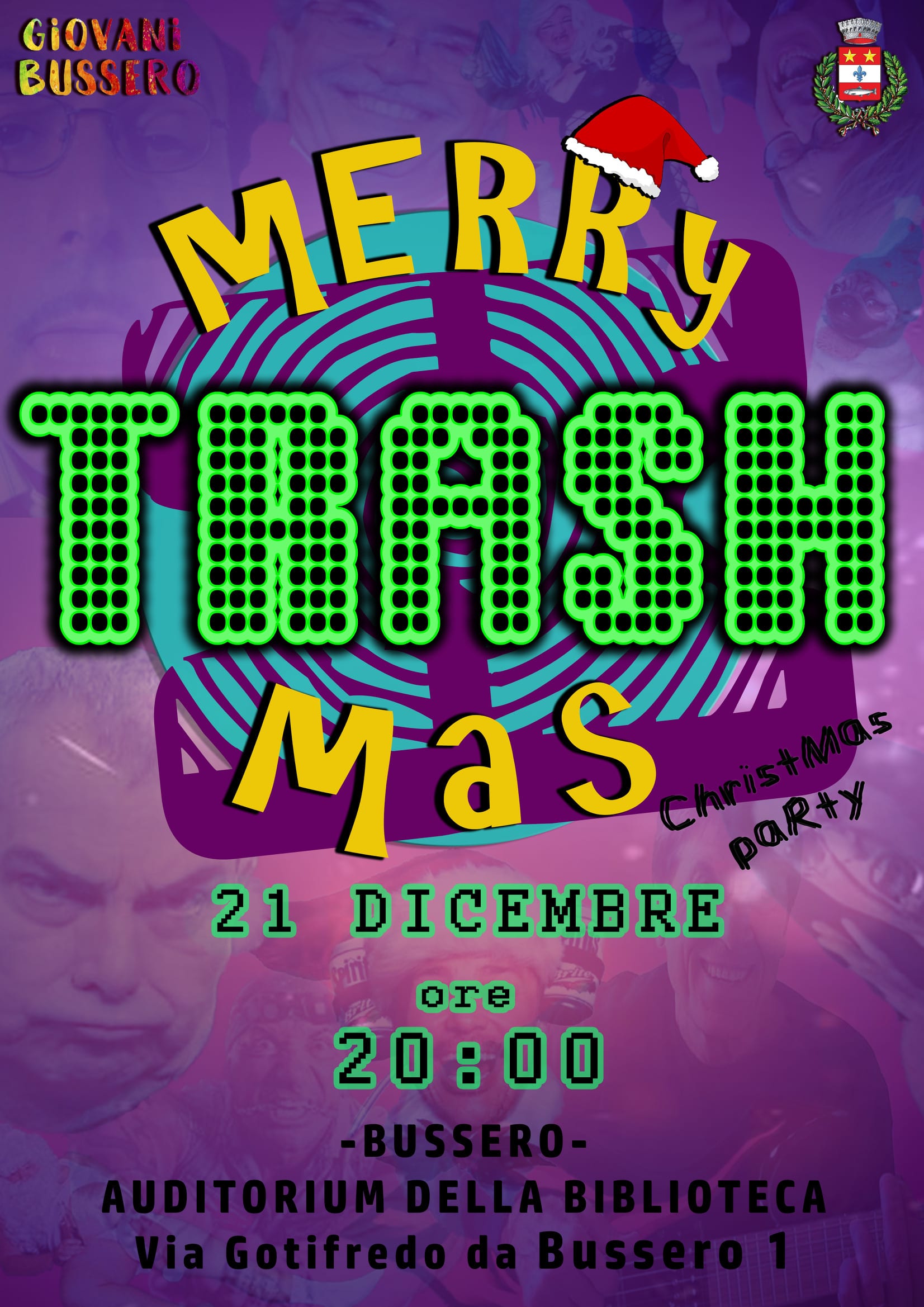cine-panettone italiano come un’apparizione celestiale, hai una gigantografia di Boldi accanto al letto e la tua suoneria è Jerry Calà, ABBIAMO LA FESTA CHE FA PER TE! Dopo il successo di “80 voglia di Natale”, dell’anno scorso, Giovani Bussero torna per un altro Christmas Party, quest’anno il tema è il TRASH! Vai di Mariah Carey, George Michael, pellicce bianche a torso nudo, palline di Natale per barba e quant’altro»