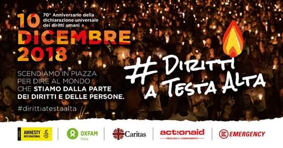 Il 10 dicembre di 70 anni fa il mondo, uscito da due guerre mondiali, sanciva con parole chiare i principi condivisi nella Dichiarazione universale dei diritti umanisecondo cui il rispetto dovuto a tutti i membri della famiglia umana e ai loro diritti sta alla base della libertà, della giustizia e della pace nel mondo: Amnesty International, Emergency, Action Aid, Oxfam e Caritas celebreranno questa data con la manifestazione Diritti a testa alta che si terrà lunedì 10 dicembre alle ore 18.30 a Milano e in altre 80 città italiane.