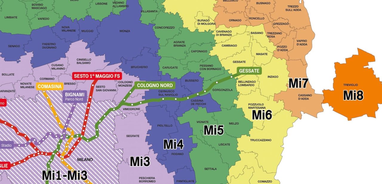 Il comune di Milano, insieme ad altri comuni della città metropolitana, comporrà un’unica zona, denominata Mi1-Mi3. Man mano che ci si allontana dal centro della mappa, cresce il numero di fasce che occorre attraversare e, di conseguenza, anche il prezzo del biglietto.