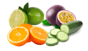 In seguito, tagliate qualche fettina di cetriolo, qualche spicchio di lime e di arancio e mettete tutto nel bicchiere che già contiene la polpa del frutto della passione.