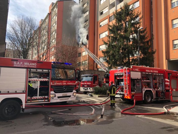 Si è concluso in modo drammatico un incendio scoppiato prima delle 9.00 di oggi, giovedì 27 febbraio, di un palazzo ALER in via Don Sturzo a Cernusco sul Naviglio. Le cause sono ancora da chiarire, ma l’incendio, parrebbe essersi propagato nella scala E del terzo piano del palazzo in cui abitano 15 famiglie. Il tragico bilancio è di due morti, uno di 80 e uno di 52 anni. Sette invece i feriti, che ora si trovano all’Ospedale di Cernusco e Melzo. Le fiamme hanno coinvolto in tutto ventiquattro persone del palazzo – che è stato evacuato – tra cui anche una persona con disabilità, per la quale non è stato necessario il trasporto in ospedale. Al momento è stata allestita una vicina palestra con tutto il necessario per la prima assistenza per ospitare le famiglie evacuate. L’edificio aveva subito di recente un intervento di adeguamento degli impianti.