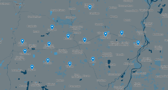 La mappa, aggiornata quotidianamente, permette di visualizzare facilmente i numeri di casi presenti nella zona della Martesana. Cliccando sugli indicatori dei diversi Comuni, è possibile verificare i casi di contagio segnalati dalle Amministrazioni o dai Sindaci, a seguito del resoconto giornaliero di ATS.