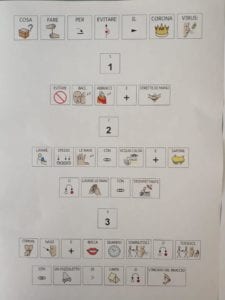 Così ad esempio le regole del Ministero della Salute vengono tradotte in Comunicazione Aumentativa Alternativa: «Qualcuno di noi fa fatica ad attenersi a queste norme… nonostante ciò la nostra Cooperativa adotta tutti i mezzi per rendere queste regole semplici» – ha scritto la Cooperativa Sociale il Sorriso.