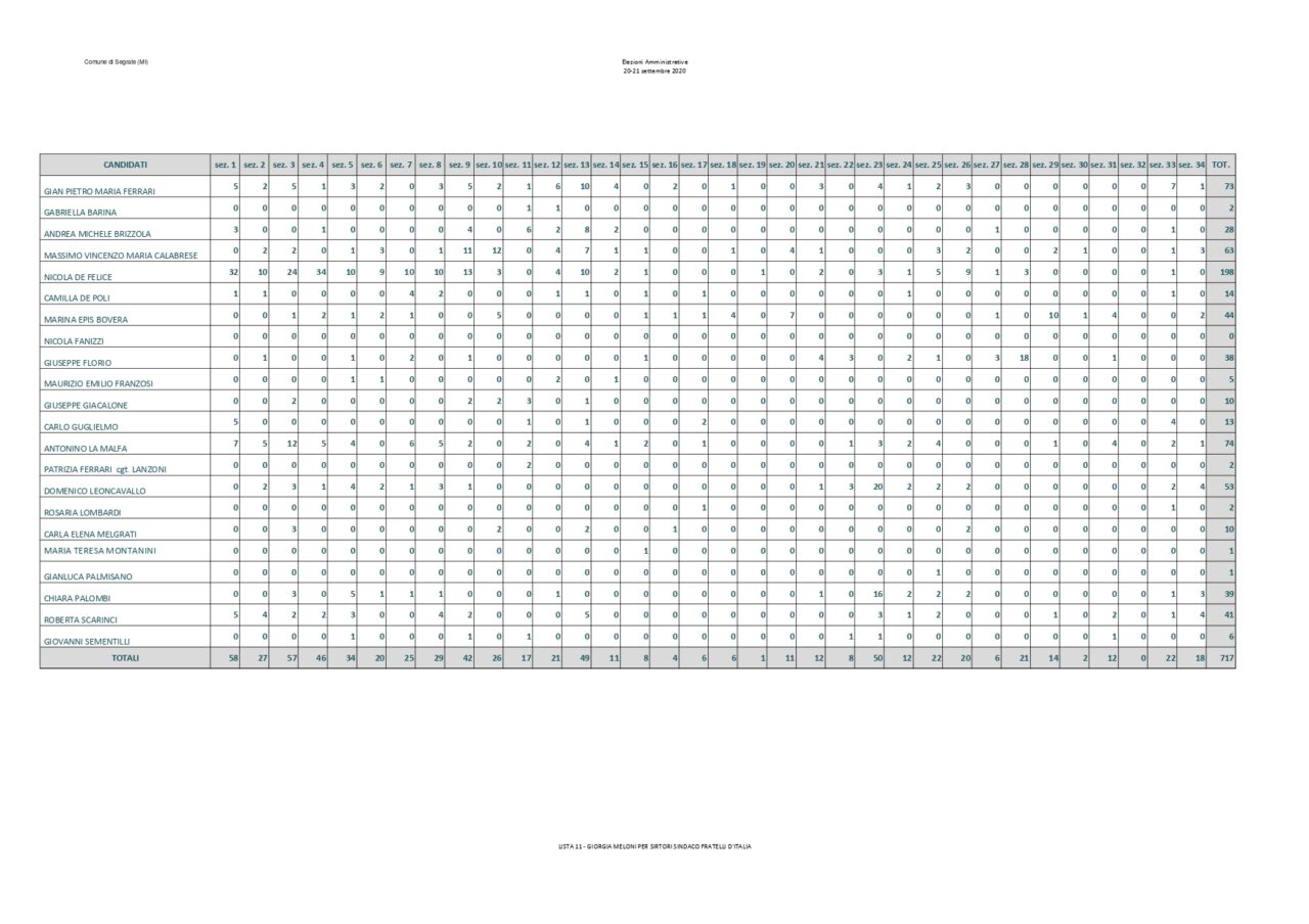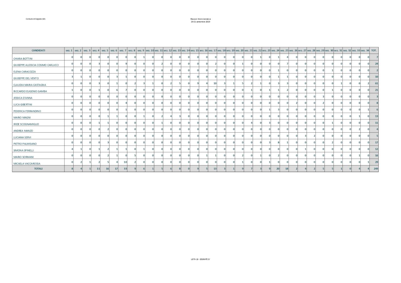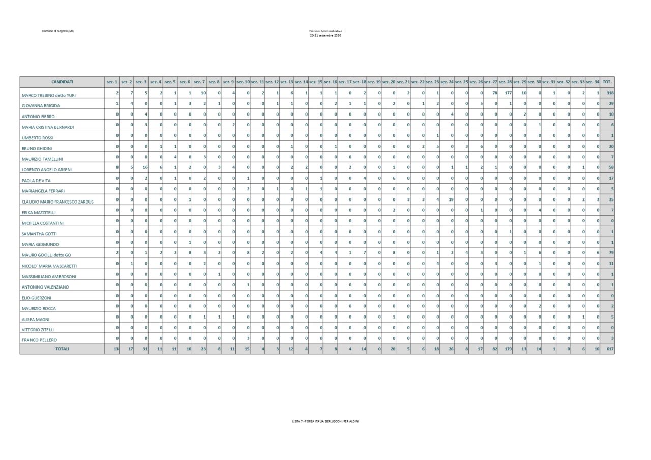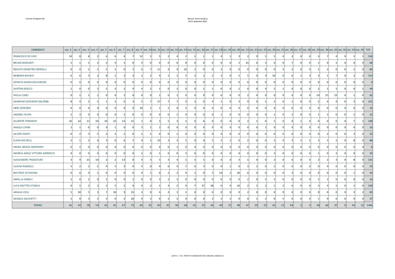 Saranno 6 i candidati della Lista Paolo Micheli che hanno ottenuto più preferenze a trovare posto nel nuovo consiglio comunale. Assieme a loro anche i consiglieri di opposizione Luca Sirtori e Laura Aldini. Rimangono fuori Arabsolgar, Viganò e Gasparini. Di seguito il dettaglio: