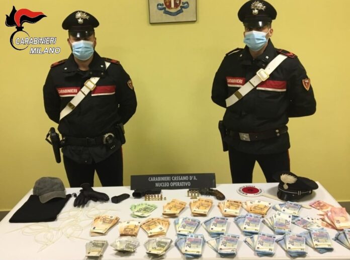 Dopo aver prelevato la refurtiva i due criminali sono usciti frettolosamente dalla banca, ma sono stati subito intercettati da una pattuglia del Nucleo Operativo Radiomobile di Cassano d’Adda ed è scattato subito l’inseguimento. Dopo una breve fuga a piedi, l’uomo, un 46 enne originario di Cologno Monzese, è stato fermato e arrestato.