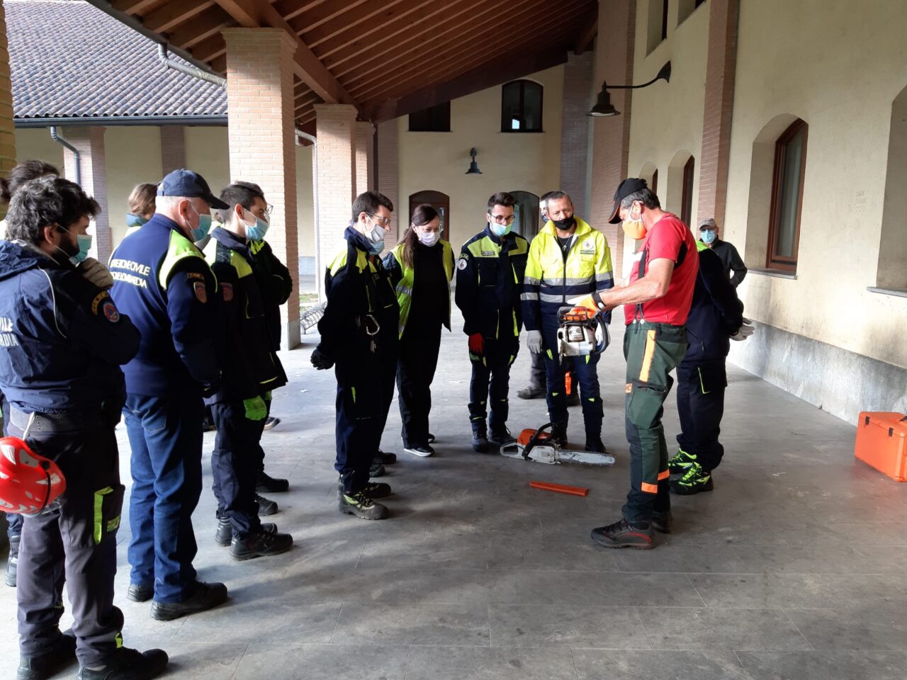 I partecipanti al corso di formazione, una trentina di persone provenienti dai gruppi di Protezione Civile di 10 comuni limitrofi, hanno affrontato una parte teorica significativa: nozioni di agronomia e primo soccorso, un’approfondimento sulle componenti meccaniche della motosega, lo studio delle tecniche di intervento in prossimità dei corsi d’acqua e, grazie ad un avvocato, hanno appreso i profili di responsabilità giuridica del volontario.
