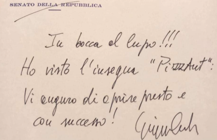 «La sincerità del bellissimo pensiero, sta in quel tratto di penna, che in alto a sinistra, si svincola da una Istituzione, e manda un messaggio sincero, umano e di buon auspicio – ha scritto Nico Acampora – Io personalmente lo trovo di un’umanità e di una forza straordinaria, che il primo Ministro abbia trovato il tempo di dedicare un pensiero e qualche attimo ai nostri ragazzi speciali. PizzAut purtroppo non potrà ancora aprire al pubblico a causa di questo maledetto Covid – ha sottolineato -, ma abbiamo deciso di tenere accesa la nostra insegna lo stesso, e mi fa piacere pensare che i nostri ragazzi abbiano portato al Primo Ministro un sorriso ed un pensiero di speranza in questo periodo così difficile e complesso per lui, per noi e per la nazione. Tutti abbiamo bisogno di speranza».