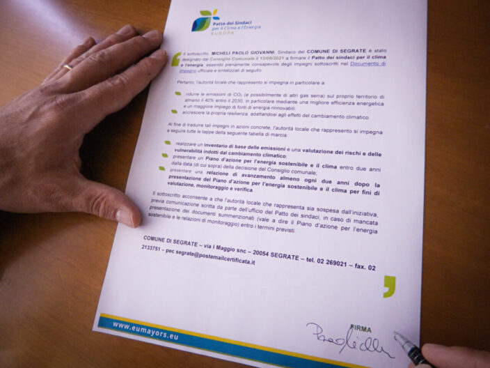 Ridurre le emissioni di anidride carbonica sul proprio territorio di almeno il 40% entro il 2030. Questo è il fulcro del “Patto dei Sindaci per il Clima e l’Energia” firmato dal sindaco di Segrate Paolo Micheli su mandato del Consiglio comunale. Per raggiungere l’obiettivo Segrate dovrà puntare su una migliore efficienza energetica e un maggiore impiego di fonti di energia rinnovabile.
