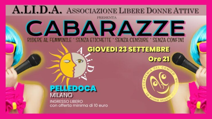 Una serata ricca di risate e di comicità «al femminile senza confini, senza etichette, senza censure», così come ha dichiarato l’Associazione, con anche uno spazio dedicato alla musica e al canto. Cabarazze è il secondo evento realizzato da settembre dall’Associazione. L’evento si svolgerà alle 21, con ingresso a partire dalle ore 20, presso il PELLEDOCA in viale Forlanini 121. L’ingresso è gratuito con un’offerta minima di 10 euro. A presentare la serata, diretta da Sonja Collini, ci saranno: la Presidente di A.Li.D.A. Betty Collura, Sara Salvaggio e Marcella Di Garbo.