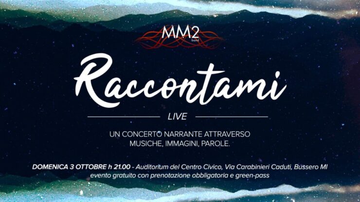 È proprio durante il primo giorno dell’apertura di Bussero in Festa 2021 che la band MM2 torna a esibirsi dal vivo. A poco più di un anno dal suo ventenario, la band ha organizzato un concerto gratuito: “Raccontami Live” si terrà nel nuovo centro polifunzionale di via Carabinieri Caduti.
