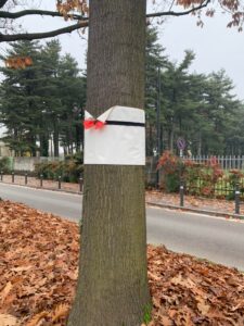 È così che gli elegantissimi alberi sono diventati protagonisti della giornata, perlomeno fino a quando dei vandali non hanno deciso di scrivere sul lavoro della Cooperativa il proprio dissenso contro la certificazione verde.