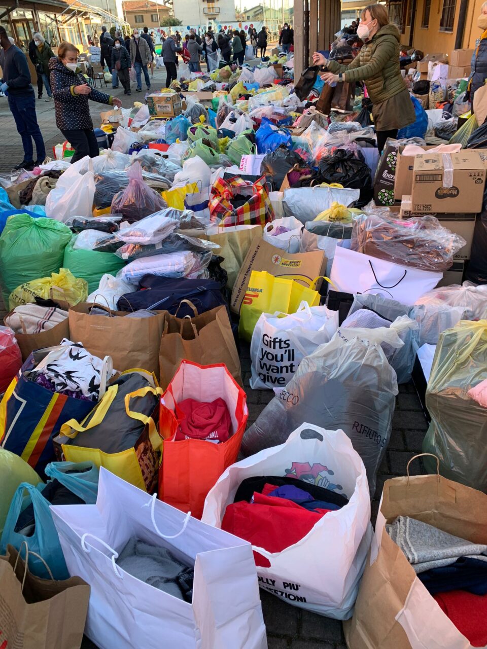 Il tam tam che (dalla pagina Facebook QUI) ci ha messo veramente pochissimo a propagarsi nei paesi limitrofi e a far scattare la macchina della solidarietà della martesana, tanto che a un certo punto gli organizzatori hanno dovuto fermare le donazioni che continuavano ad arrivare. La carovana della solidarietà ha così invaso il piazzale dell’oratorio tra coperte, vestiti, pannolini cibo in scatola a lunga conservazione.