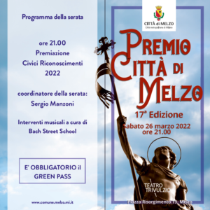 Si terrà sabato 26 marzo alle 21 al Teatro Trivulzio di Melzo l’evento “Premio Città di Melzo 2022”. La manifestazione, giunta alla diciassettesima edizione, assegna le Civiche Onorificenze ai cittadini e alle associazioni del territorio che si sono distinti con opere e azioni di alto profilo etico.