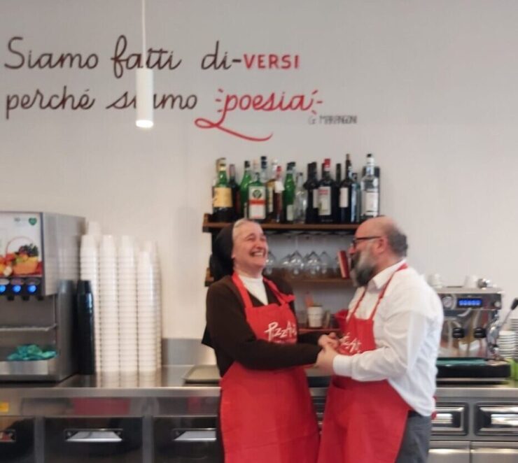 «Oggi è venuta a trovarci una donna straordinaria, una donna rara per ironia, determinazione e capacità di amare» inizia così il racconto di Nico Acampora che ormai da quasi un anno gestisce PizzAut, cui successo è instancabile. Parla di Suor Veronica Donatello, che per la terza volta raggiunge il ristorante, annunciando loro che il primo aprile sono attesi da Papa Francesco per un’udienza privata.