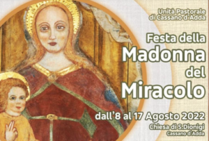 L’Unità Pastorale di Cassano d’Adda ha organizzato anche per quest’anno, la Festa della Madonna del Miracolo: 9 giorni di eventi religiosi, mercatini, pesche di beneficenza e la mostra “Sacra Supleex”, per celebrare il miracolo della guarigione di Francesco Campi.