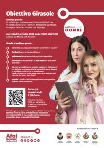 L’incontro si terrà dalle 10 alle 12 online su Microsoft Teams. Gli obiettivi della giornata ci saranno diversi: si partirà da una riflessione sul tema “donne e lavoro” e su tutte le questioni ad esso collegate. Successivamente si affronteranno temi specifici, quali la riattivazione verso la ricerca del lavoro; l’individuazione delle proprie caratteristiche distintive positive; la valorizzazione della propria identità e le soft skills utili alla ricerca lavorativa; l’allenamento al cambiamento e capire quali sono gli strumenti per definire un progetto di vita sostenibile verso il lavoro, in equilibrio con i carichi di accudimento (work-life balance), che tenga conto delle esigenze del mercato del lavoro post-Covid. Infine verrà esposta l’offerta dei servizi di Afol Metropolitana.
