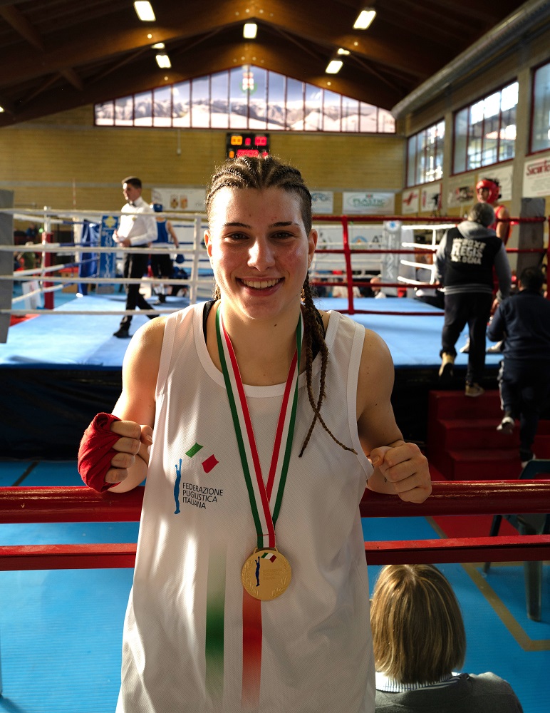 L’atleta 18enne della palestra Kombat Academy di Vimodrone è salita per la prima volta sul ring dei campionati italiani femminili di pugilato, che si sono tenuti a Roccaforte Mondovi dal 24 al 30 ottobre 2022, e ha conquistato la medaglia d’oro.