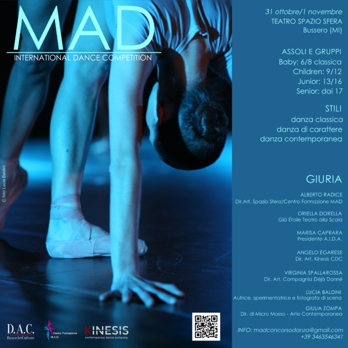 Centro di Formazione M.A.D. (Musica, Arte e Danza) organizza la prima edizione del MAD International Dance Contest per ballerini non professionisti, che si terrà il 31 ottobre e il 1° novembre, presso il Teatro Spazio Sfera di Bussero.