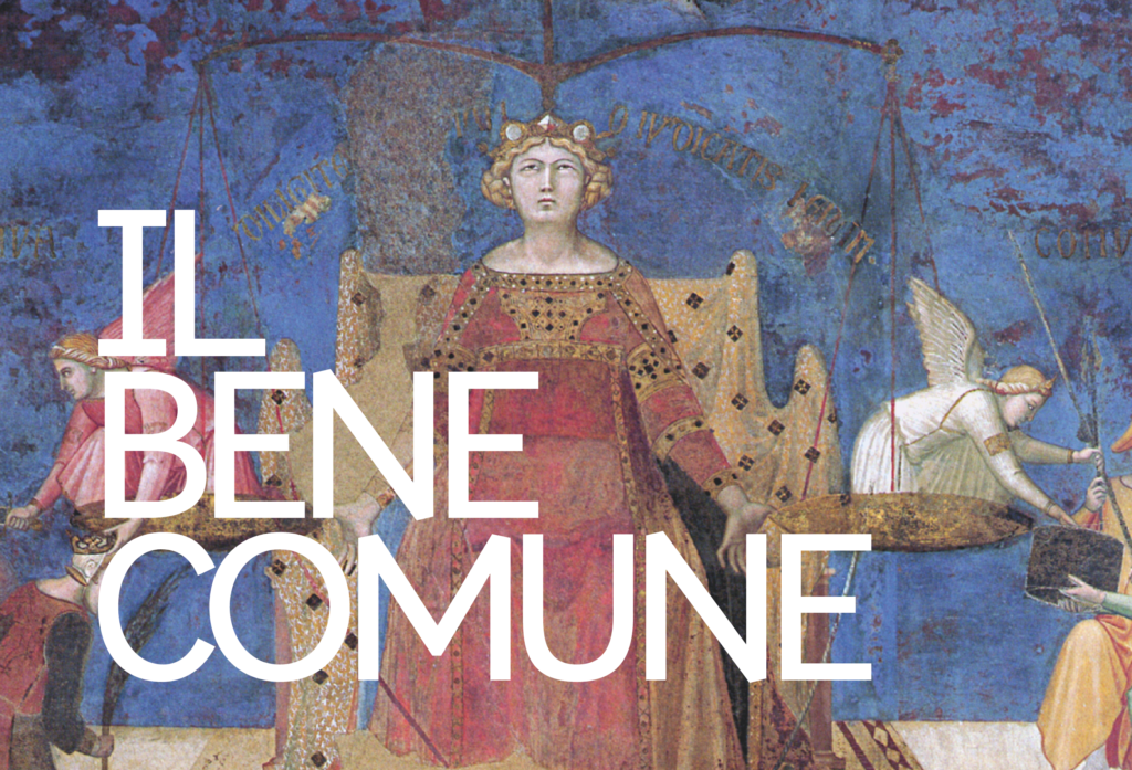 Ambrogio Lorenzetti è stato un pittore italiano. Fu uno dei maestri della scuola senese del Trecento. Fratello minore di Pietro Lorenzetti, fu attivo dal 1319 al 1348 e si distinse soprattutto per la forte componente allegorica e complessa simbologia delle sue opere mature e per la profonda umanità dei soggetti rappresentati e dei loro rapporti. Nel 1338-1339 Ambrogio dipinse quello che ancora oggi è considerato il suo capolavoro tra le opere a noi pervenute,Le Allegorie del Buono e Cattivo Governo e dei loro Effetti in Città e in Campagna, dispiegate su tre pareti per una lunghezza complessiva di circa 35 metri nella Sala dei Nove del Palazzo Pubblico di Siena. Sulla parete di fondo della sala si trova l’Allegoria del Buon Governo dove ogni aspetto del governo (quale la Giustizia, il Comune di Siena, i cittadini, le forze dell’ordine, etc.) e le virtù loro ispiratrici (sapienza divina, generosità, pace, virtù cardinali e virtù teologali, etc.) sono rappresentati da figure umane. Tutte queste figure interagiscono secondo un preciso ordine a rappresentare una scena assai complessa. Sulla parete di destra è presente l’Allegoria degli Effetti del Buon Governo in Città e Campagna, con una rappresentazione allegorica del lavoro produttivo entro la città di Siena e nella sua campagna. Infine, sulla parete sinistra è presente l’Allegoria del Cattivo Governo, con personificazioni degli aspetti del malgoverno e dei vizi e dei suoi effetti in città e campagna. Il ciclo di affreschi è da sempre studiato da critici ed appassionati non solo di storia dell’arte, ma anche di storia e del pensiero politico, di urbanistica e del costume. Di fatto fu uno dei primi messaggi di propaganda politica in un’opera medievale. Dal punto di vista dottrinale vi è un chiaro riferimento al pensiero di san Tommaso d’Aquino. “L’assunto dottrinale è chiaramente tomistico: non solo perché riflette la gerarchia dei princìpi e dei fatti, delle cause e degli effetti, ma perché pone come motivi fondamentali dell’ordine politico l'”autorità” (nelle allegorie) e la “socialità” (negli effetti), specialmente insistendo sul concetto aristotelico (di Aristotele) della “naturalità” della socievolezza umana