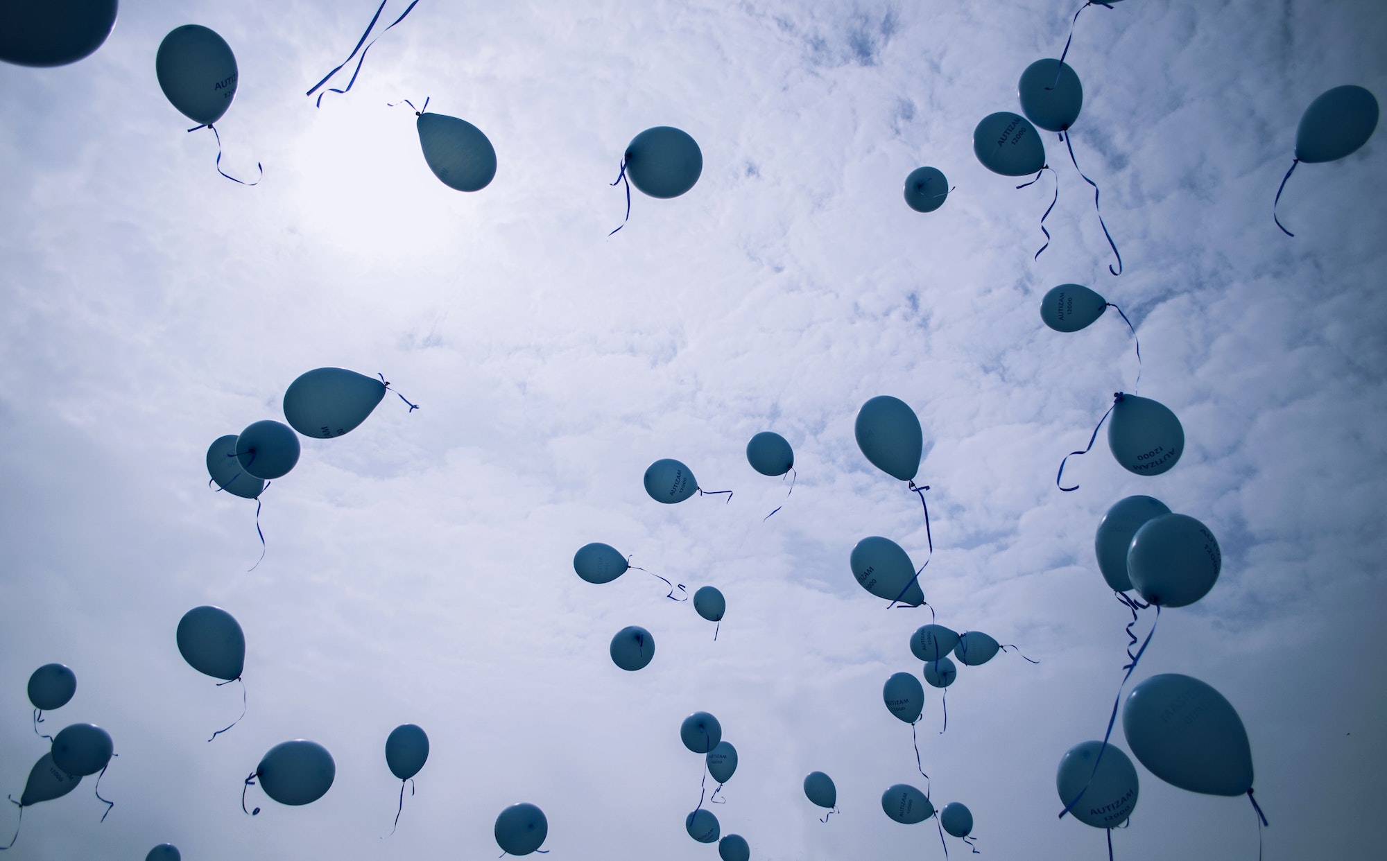 Blue balloons up in the sky