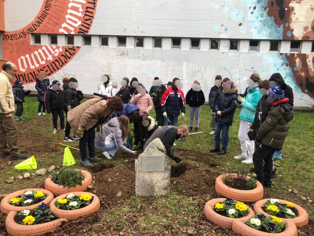La mattina di martedì 28 febbraio gli alunni della Scuola Secondaria di I grado “Giovanni Falcone” di Cassina de’ Pecchi si sono dedicati a piantumare arbusti e piccole piante nel giardino dell’Istituto di via Sirio, presso il cippo in pietra che ricorda il grande magistrato a cui è intitolata la Scuola.La cerimonia di consegna degli alberi è iniziata sulle note dell’“Inno alla gioia”, eseguito da un trio musicale di studenti diretto dalla professoressa Liguori. Alla manifestazione hanno preso parte anche il sindaco Elisa Balconi con gli assessori Fabio Varisco e Gianluigi De Sanctis, Armando Escalona referente di Plastic Free e la dottoressa Mariagrazia Malagoli, la presidente del Consiglio d’Istituto, Silvia Barone, il comandante dei Carabinieri, Davide Leone e il vicecomandante maresciallo Domenio Quattrone.