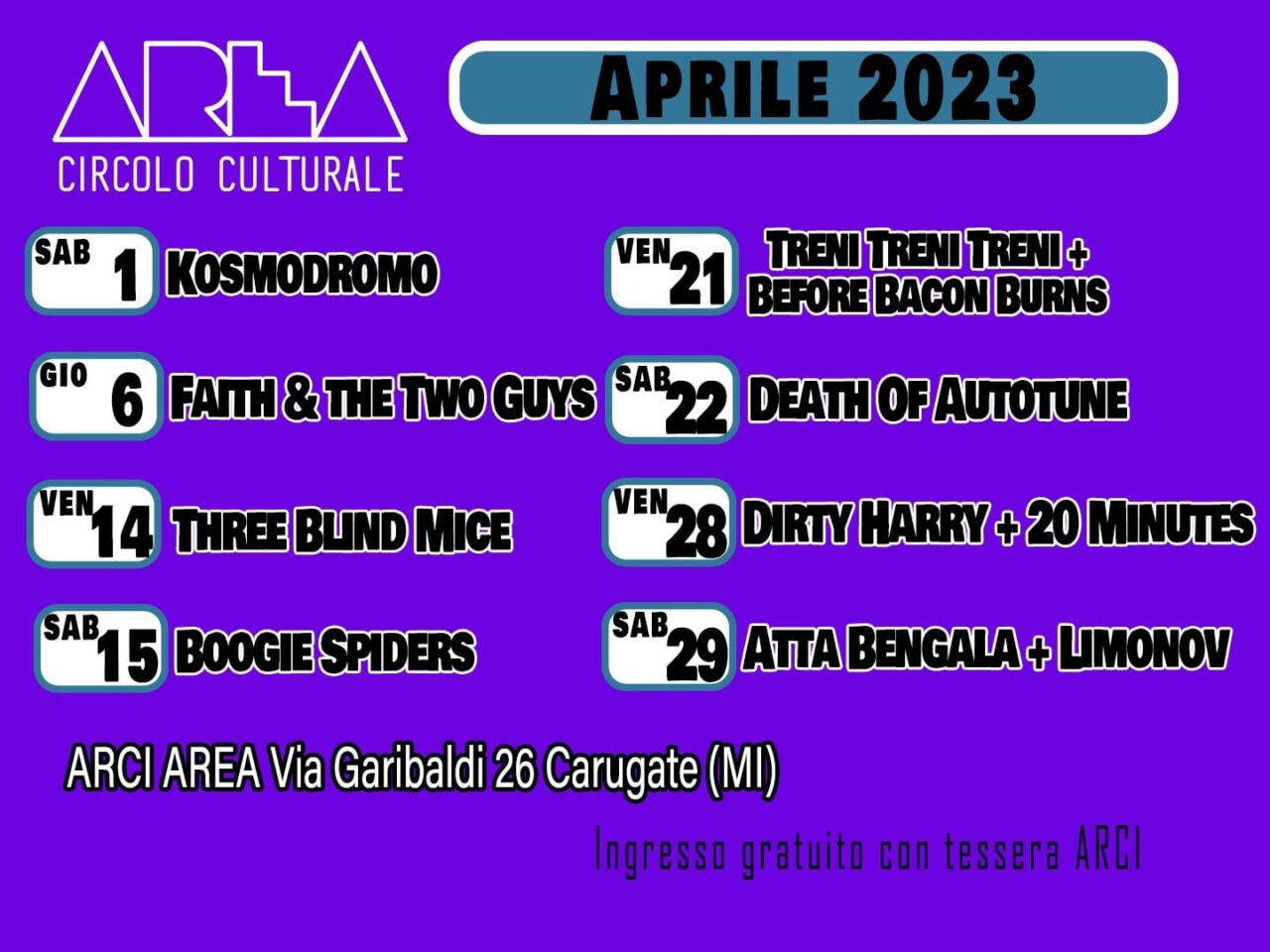 Si entra nel vivo della stagione primaverile all’Area di Carugate. Dopo un marzo ricco di musica, il mese di aprile si prospetta non essere da meno: con la serata del 1° aprile che ha aperto le danze, ora si fa sul serio.