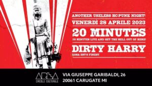 con il Live musicale con i Dirty Harry suonano insieme hardcore punk rock dal lontano 1998, con il loro primo show all’Arci Blob di Arcore. Nati da una costola dei Diserzione e Midnight Kings, i 20 minutes sono un power trio composto da tre veterani del circuito underground di Domodossola.