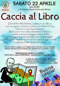 L’appuntamento è previsto per sabato 22 aprile alle ore 10.30 presso il Centro Socio Culturale Atrion della Biblioteca Civica di Carugate in Via Francesco D’Assisi, dove avrà luogo una vera e propria “Caccia al Libro”