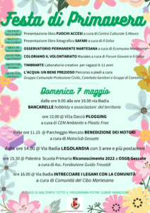 Tutto pronto per la festa di primavera a Gessate, un modo unico di festeggiare l’arrivo della bella stagione in compagnia. Tanti gli eventi che si terranno sul territorio, già a partire da Giovedì’ 4 maggio per poi moltiplicarsi nella giornata di domenica 7 maggio.