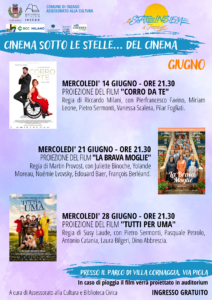 La Biblioteca Civica di Inzago con il patrocinio del comune presenta la rassegna cinematografica “Cinema sotto le stelle…del cinema” che si terrà ogni mercoledì del mese di giugno 2023 presso il parco della Villa Cornaggia in Via Piola 18. Un’occasione, come già altre proposte in passano dal comune, per poter godere di un atmosfera unica e suggestiva da condividere con gli amici e la famiglia.