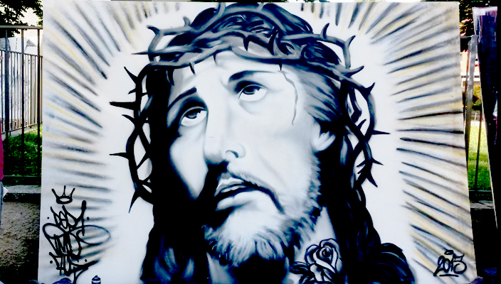 Qualche giorno fa, uno degli artisti che ha partecipato a quel progetto nel 2015, passando per una delle strade cernuschesi, ha notato un cartello stradale, di quelli mobili e provvisori, che, complice la pioggia, ha rivelato un volto a lui molto familiare. Ad apparire sotto la comunicazione dei lavori stradali, proprio il volto di Cristo, dipinto in occasione della Festa di San Giuseppe del 2015.