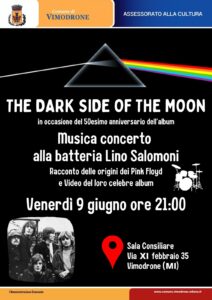 a 50 anni dall’uscita del album che ha reso celebri i Pink Floyd nel mondo, le sonorità della band britannica saranno protagoniste a Vimodrone grazie al racconto delle loro origini, la proiezione di un video e al concerto di Lino Salomoni alla batteria organizzato dall’Amministrazione comunale attraverso l’Assessorato alla Cultura. L’ingresso è libero.