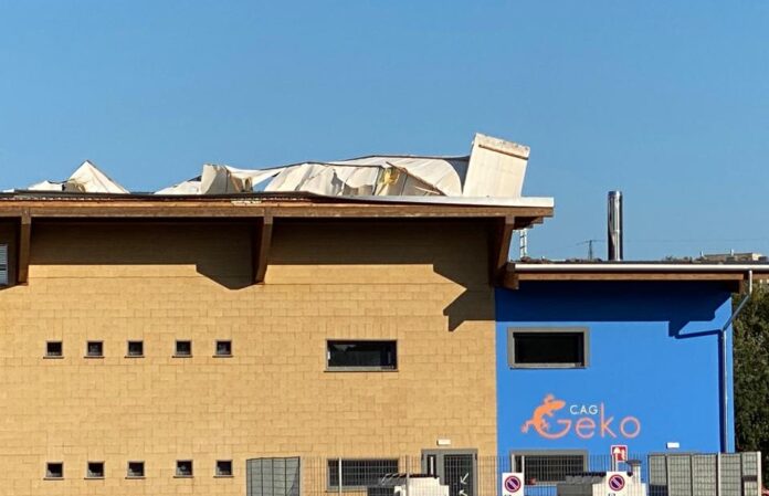 La grandine e le potenti folate di vento non hanno infatti risparmiato nemmeno il Centro Polifunzionale di Bussero, causando il sollevamento di una porzione del tetto e svariati danni all’edificio, tanto da rendere inagibili alcune parti di questo, tra cui il CAG “Geko”, e la palestra posta al primo piano.