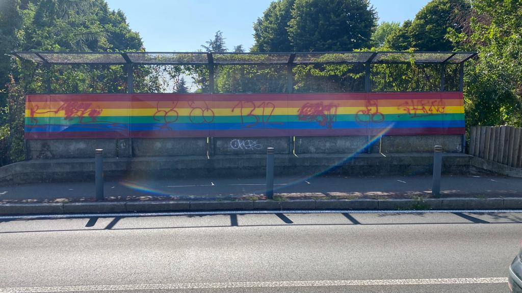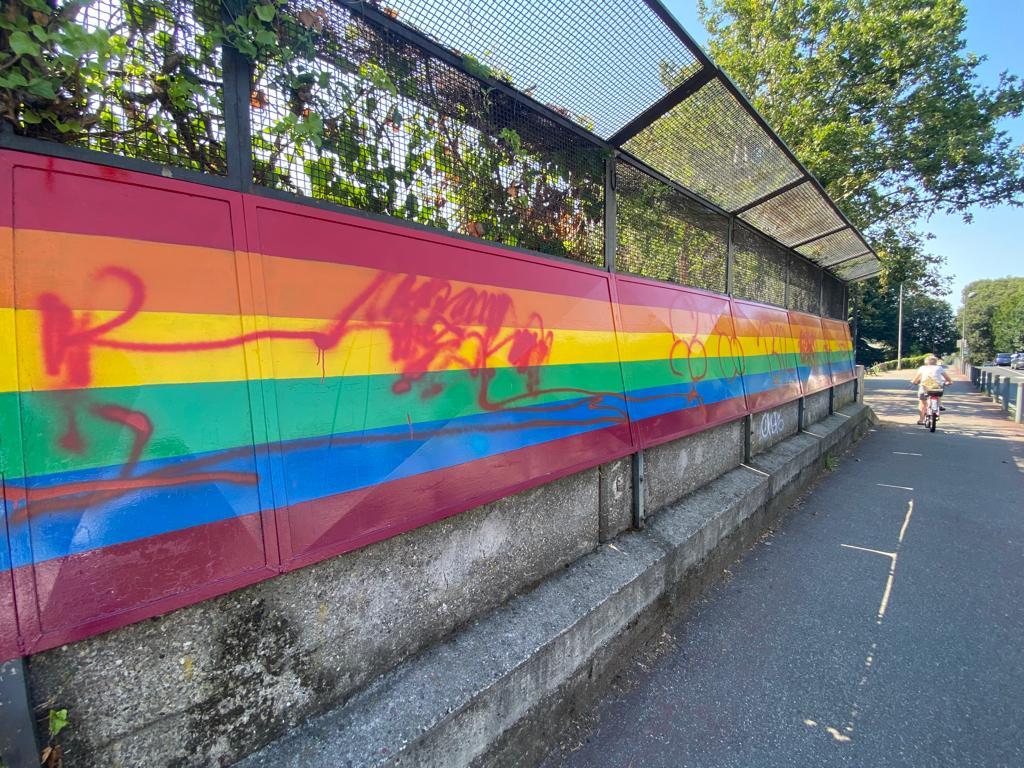 Sono comparse ieri, lunedì 10 luglio, nei pressi della metropolitana di Cernusco, una serie di volgarità e scarabocchi sulle barriere metalliche protettive che ospitavano l’arcobaleno di inclusione, a poche settimane da quando è stato dipinto. L’ennesimo episodio di vandalismo a cui assistiamo nel territorio della Martesana. Il più recente atto vandalico che ha fatto il giro del web tanto da vedere la solidarietà di numerosi personaggi era infatti avvenuto sul muro de “I Ragazzi di Robin”, a Segrate, pochi mesi fa.