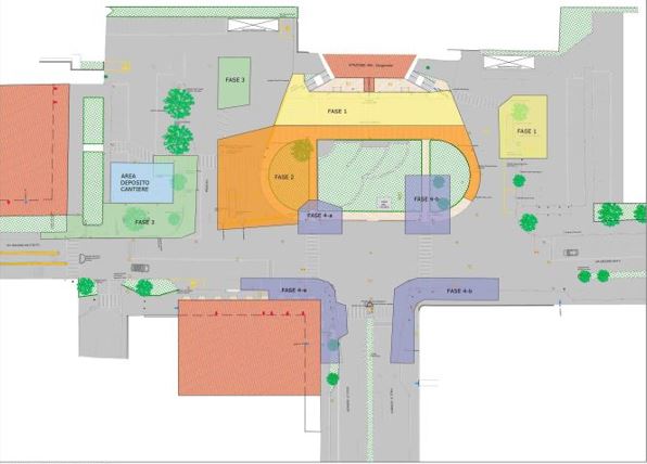 Le lavorazioni, per la durata complessiva di circa 5 mesi, sono state suddivise in cinque fasi, ogni singolo ambito di intervento sarà delimitato con recinzione e segnaletica di cantiere.La prima fase, della durata di cinque settimane, permetterà di realizzare la nuova fermata del TPL Trasporto Pubblico Locale urbano sul lato est del piazzale (verso il supermercato Coop) e lo spazio pavimentato in porfido, antistante l’ascensore della stazione MM2. La seconda fase, della durata di tre settimane, prevede la demolizione e realizzazione della nuova banchina di attesa dei mezzi del trasporto pubblico extra urbano, posta sul lato ovest del piazzale e lo spazio pavimentato in porfido, perimetrale all’aiuola centrale. La terza fase, della durata di tre settimane, riguarderà la riqualificazione dei marciapiedi posti sul lato ovest tra via Matteotti e piazza Europa.La quarta fase, della durata di 5 settimane, prevede la riqualificazione dell’intersezione tra piazza Europa con Viale Kennedy/via Matteotti e via Ratti.La quinta e ultima fase, della durata di tre settimane, attiene alle opere di realizzazione di un attraversamento pedonale rialzato lungo la via Kennedy in prossimità dell’innesto con via Don Gnocchi. La viabilità, regolata dall’ordinanza della Polizia Locale avrà lo scopo di garantire la circolazione dei mezzi autorizzati al transito all’interno del piazzale per tutta la durata tramite il restringimento della carreggiata.