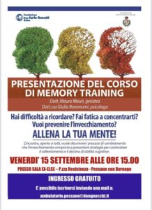 Migliorare la capacità di memoria e concentrazione per prevenire l’invecchiamento questi gli obiettivi del corso di Memory Training il corso che permetterà ai partecipanti di allenare la propria mente organizzato dalla Fondazione Don Carlo Gnocchi Onlus con la collaborazione del Comune di Pessano.