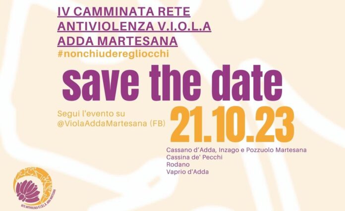 violenza sulle donne che si celebra il 25 novembre,La Rete Antiviolenza Adda Martesana V.I.O.L.A., organizza una camminata non competitiva che attraversa alcuni comuni dell’Adda Martesana, con l’obiettivo di sensibilizzare e coinvolgere le comunità rispetto al tema del contrasto della violenza di genere.