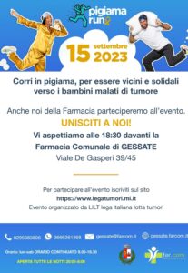 L’appuntamento è per venerdì 15 settembre alle ore 18.00 con ritrovo davanti alla Farmacia Comunale di Gessate in via De Gasperi 39/45 con partenza alle ore 18.30. Per partecipare basterà iscriversi al seguente link https://www.pigiamarun.it/ versando un contributo di 12 o 15 euro a seconda di come si sceglierà di ricevere la pettorina. Si potrà seguire l’evento anche sui social e condividere i propri allenamenti o pigiama il giorno dell’evento con #pigiamarun.