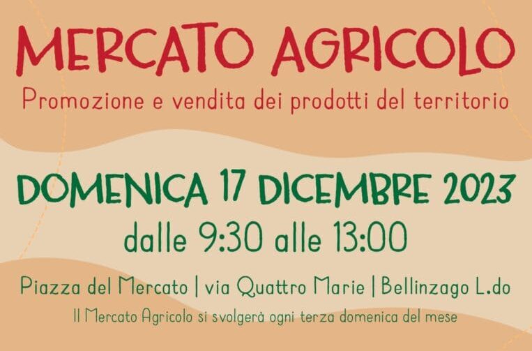 Torna il 17 dicembre l’appuntamento con il mercato agricolo agricolo di Bellinzago Lombardo.