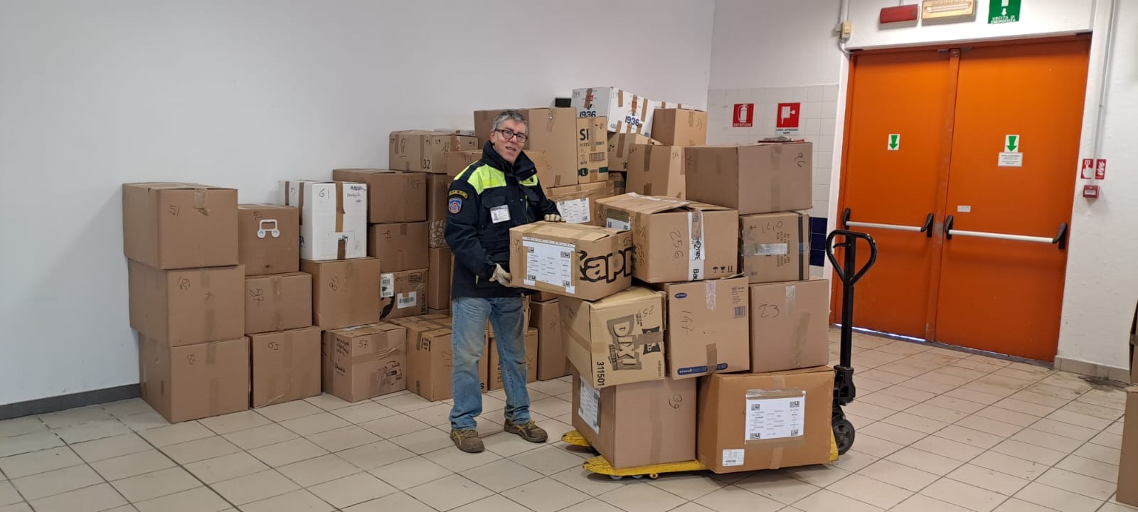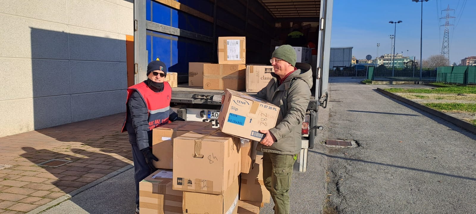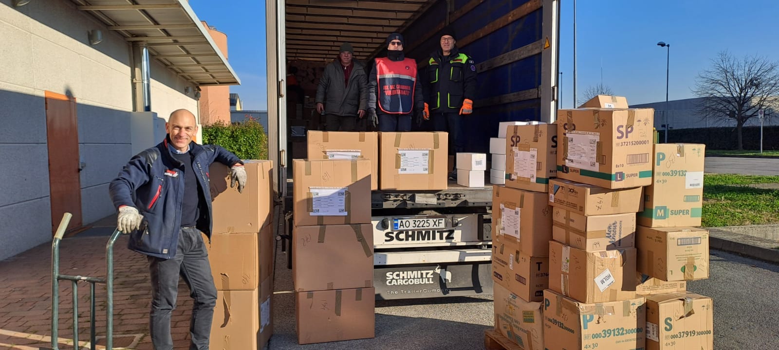Nel corso di del weedkend del 20/21 gennaio, l’autoarticolato partito da Cernusco sul Naviglio, ha varcato la frontiera per entrare in Ucraina. È pieno di 216 scatole (8988 pezzi) di barrette energetiche, sei presidi ortopedici e 296 scatoloni con i beni di vario genere, dal vestiario agli omogeneizzati.