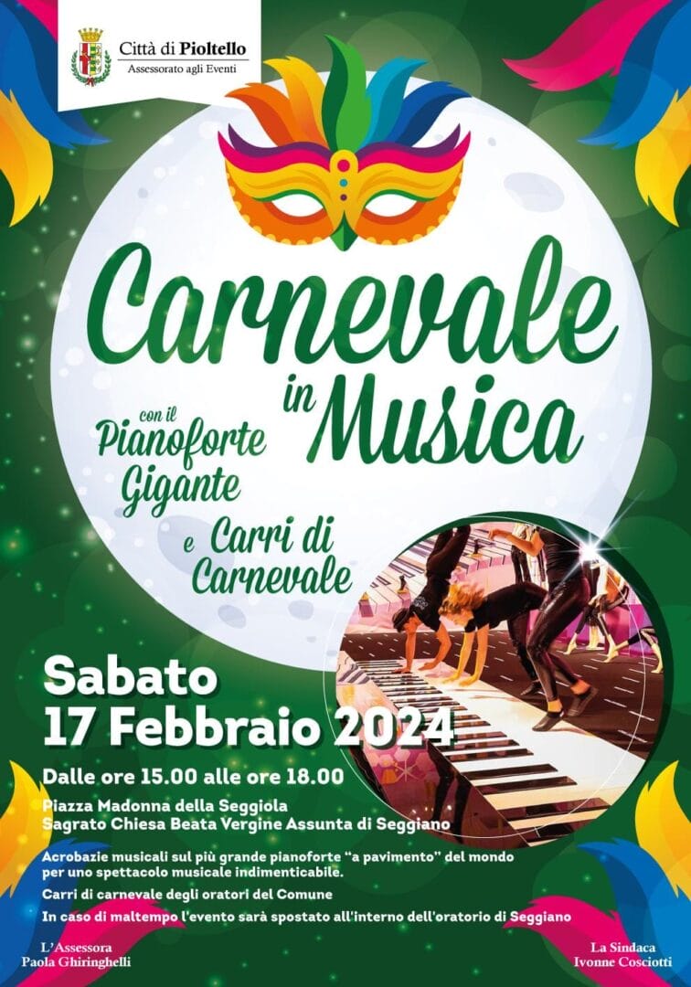 In arrivo a Pioltello un Carnevale carico di musica e di record: ci sarà infatti il pianoforte a pavimento più grande del mondo su cui bambine e bambini potranno divertirsi a saltellare, ballare, cantare… perché a Carnevale ogni scherzo vale! Maschere, coriandoli, stelle filanti, carri allegorici degli oratori cittadini vi aspettano. E poi una dolce merenda per tutti: chiacchiere e cioccolata calda!