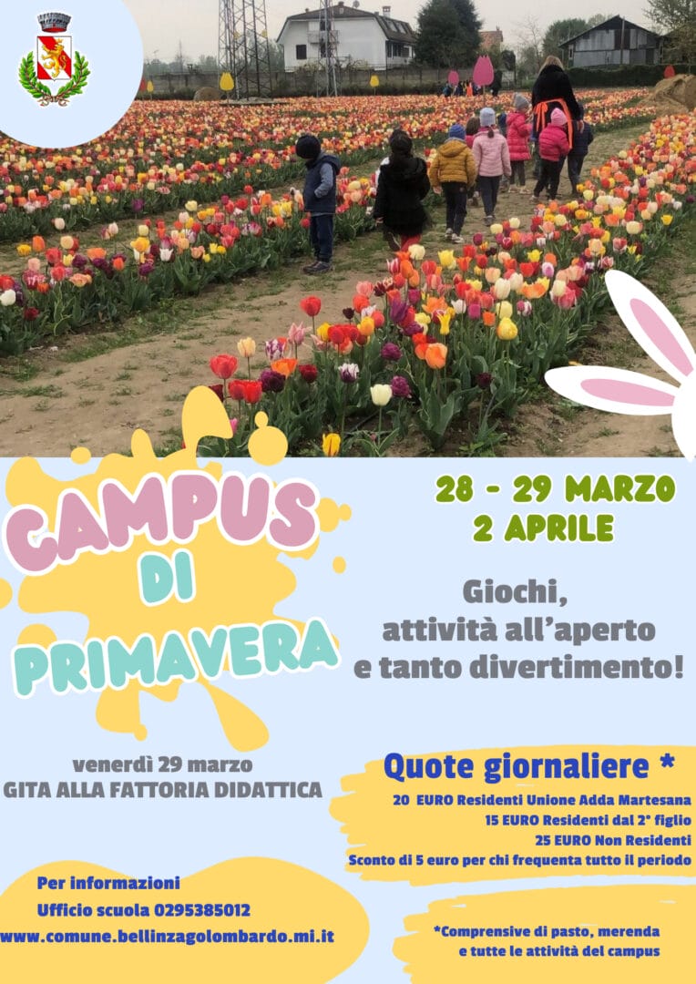 L’Amministrazione Comunale di Bellinzago Lombardo ha organizzato e proposto il “Campus di Primavera” che si terrà presso la Scuola Primaria e sarà attivo nelle giornate del 28 e 29 marzo e 2 aprile dalle 8 alle 17. L’intento del progetto è quello di restare a fianco  delle famiglie durante le chiusure scolastiche per le festività pasquali.