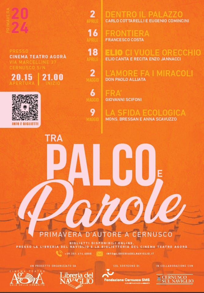 «La collaborazione tra Teatro Agorà e Libreria del Naviglio è sicuramente proficua e fruttuosa -commentano Guido Brovelli, responsabile di Agorà, e Guido Cavalletti, responsabile di Libreria del Naviglio, «l’obiettivo che ci siamo dati è stato quello di proporre alla comunità una rassegna culturale di alto livello, con il richiamo di grandi nomi come Elio, Francesco Costa, Giovanni Scifoni, Carlo Cottarelli, Mons. Luca Bressan, Anna Scavuzzo e Don Paolo Alliata. Consideriamo questa rassegna come un banco di prova, certi di poter replicare e ampliare la proposta già dalla prossima stagione. Un ringraziamento al Comune di Cernusco per la collaborazione e alla Fondazione SMS per il sostegno».