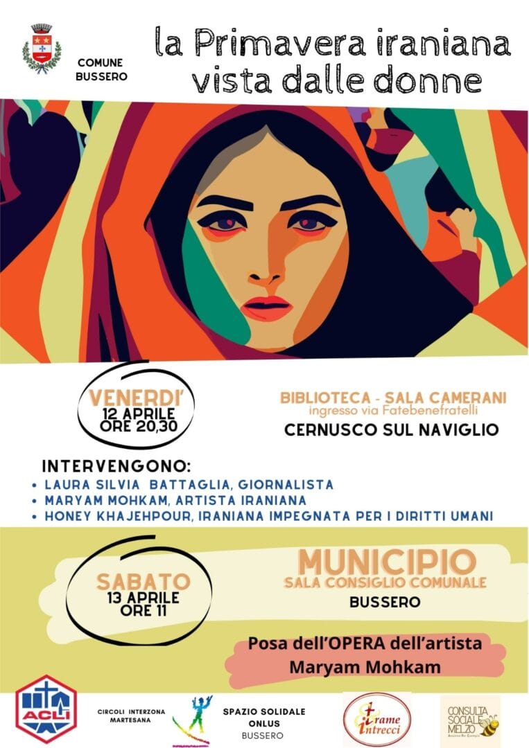 Il Comune di Bussero, in collaborazione con i Circoli ACLI della Martesana, l’associazione Spazio Solidale ONLUS, l’associazione culturale Trame e Intrecci e la Consulta Sociale di Melzo, organizzano due giorni dedicati alla “Primavera iraniana” raccontata dal punto di vista delle donne. Un tema sempre al centro del dibattito pubblico, tanto da raggiungere il palco del Festival di Sanremo nel 2023 con l’intervento dell’attivista iraniana Pegah Moshir Pour.