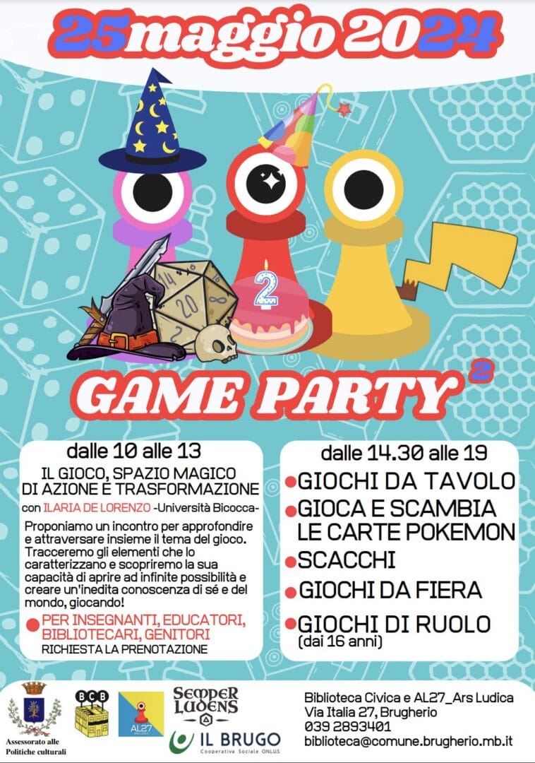 La festa per il secondo compleanno è prevista per l’intera giornata di sabato 25 maggio e ha in programma due iniziative in continuità con la mission del servizio: al mattino un momento di formazione sulla pedagogia del gioco e poi per tutto il pomeriggio un Game party.