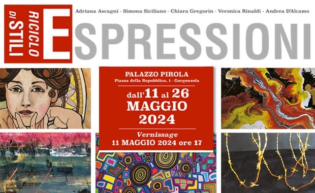 «Presentiamo a Palazzo Pirola una mostra spumeggiante, attraverso i toni vivaci e le sfumature vengono espressi i nostri pensieri, gli stati d’animo e le visioni del mondo -si legge nella nota di presentazione della mostra “Espressioni di Riciclo e Stili“- Siamo un gruppo di 5 stilisti dell’arte (Adriana Ascagni, Simona Siciliano, Chiara Gregorin, Veronica Rinaldi e Andrea D’Alcamo), uniti dal desiderio di mostrare ai cittadini di Gorgonzola ciò che dipingiamo e creiamo attraverso colori materiali ed emozioni».