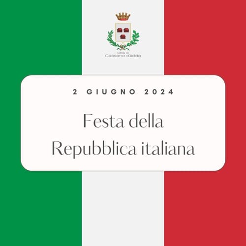 Per domenica 2 Giugno, Festa della Repubblica Italiana, il Comune di Vignate invita la cittadinanza alla Cerimonia del 78° anniversario della nascita della Repubblica.
